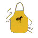 Gelbe Schürze, welche die Vorlage Hand-gezeichnet, farbiges Bleistiftzeichnen des Bucht Thoroughbredpferds kennzeichnet.