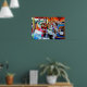 Drei Karussell-Ponys auf einem Bild. Was für ein lustiges Bild für ein Kinderzimmer, eine Vorschule oder einen Kindergarten. Dieses farbenfrohe Bild zeigt drei Ponys, die entlang galoppieren. Jedes Pferd ist anders dekoriert. Das waren die Fahrten, die die Kinder am meisten wählten, obwohl viele auch andere Tiere bevorzugen.