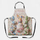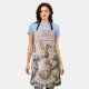 Personalized all-over print apron featuring vintage Easter bunnies quilted-style design. Three adorable fabric-look rabbits with Easter egg basket and "Happy Easter" message. Customize with name embroidered at top. Cottage core shabby chic aesthetic. Perfect for Easter cooking, baking, or kitchen gift.