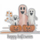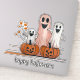 Dies ist ein niedlicher Halloween Aufkleber mit drei glücklichen Gespenstern und zwei Jack o' Lanterns. Sie können den Standard-Text "glücklich Heilschlauch" anpassen.