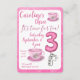 Three It’s Time for Tea 3rd Birthday Invitation. This adorable illustration is perfect for your sweet little girl’s third birthday party. Gather up your family and friends and celebrate the third year. Sweet soft pastel and blush pink surround a teacups and balloons. Get out the tea set and add some pink lemonade. Let your girl be a hostess on her special day. Let her serve the “tea” and the cake. This par-tea is bound to be sweet.
