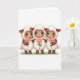 This card shows three fluffy, lamb-like friends standing close together on a white background, their rounded bodies and soft texture giving them a cozy look. They face forward with large dark eyes, rosy cheeks, and small upturned smiles, and the way they lean in slightly suggests an affectionate friendship. Each one holds a bright pink, daisy-shaped flower with a yellow center and a thin green stem, like they’re sharing matching gifts 🌷. Light pink accents appear inside their ears and on their cheeks, tying the flowers’ color into their faces. A short greeting sits near the top in a light pink print, centered above the characters. Along the bottom, a narrow strip of green grass grounds the scene, with gentle strokes that hint at a spring morning 🐰. The three flowers tilt at slightly different angles, and the grass band runs straight across the lower edge beneath their feet.