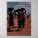 The silhouette of three lone figures walking into the distance carrying their baskets on their heads