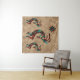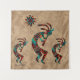 Dies ist ein einzigartiges "One of a Kind" Südwest Kokopelli Wall Wandtapestry! Es hat drei südwestliche Kokopelli in Türkis, Orange und Schwarz... Tanzen und spielen der Flute und tanzen unter der Sonne auf einem Tan Leder Hintergrund!
