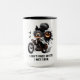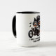 Throttle & Shadows Tasse Eine silberhaarige Zauberin brüllt durch die Trübnis, ihr Bogen krönte sich mit Schädeln und ihr Grinsen wurde aus Unheil geschnitzt. Rauch spaltet von den Reifen, wie Fledermäuse zerstreuen und ein geistreicher Bestie dahinter lauert - seine Augen leuchten wie Knollen, sein Grinsen aus Albträumen gestickt. Das ist Halloween unverkettet: ein Fest der Geschwindigkeit, des Geistes und des Nervenkitzels, vorbei an der Angst mit Stil zu reiten.