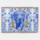Weimaraner colourized in blue hues with a gold leaf letter "O" and a Blue and White decorative floral pattern background. This is a custom design for the Ontario Weimaraner Rescue and Assistance (OWRAssist). A percentage of the proceeds goes toward helping rescued Weimaraners.