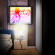 Abstraktes Design mit einer elektrischen Gitarre mit abstrakten Blumenmustern und einem musikalischen Partiturhintergrund.