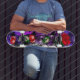 Dieses einzigartige Skateboard Deck hat ein cooles, farbenfrohes Graffiti-Aussehen, mit Rose, Kirschen, Wolken und Blitz. Dieses Motherboard ist in verschiedenen Größen und Stilen erhältlich und eignet sich hervorragend für den alltäglichen Skaten oder sogar für das Aufhängen an der Wand als ein sehenswertes Kunstwerk.