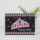 Make sure to treat your Birthday Queen like royalty with these fun birthday party invitations. Featuring a pink tiara covered in jewels against a black background. Front text says BIRTHDAY PARTY. Fully customizable text on back for all your party information. Coordinated postage stamps, T-shirts, tote bags, mugs, stickers and more also available. PinkInkArt original!