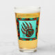 Dies ist ein einzigartiges "One of a Kind" Südwest Tribal Bären Paw Bierglas! Es verfügt über einen amerikanischen Stammbärenpaw, der Schutz und gute Gesundheit darstellt...auf einem türkisfarbenen Hintergrund... umgeben von einem Südwestturkyis, Orange und Schwarzen Border! Dies ist ein Original Grafikdesign von Artist Kerry Miller.