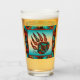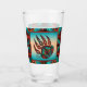 Dies ist ein einzigartiges "One of a Kind" Südwest Tribal Bären Paw Bierglas! Es verfügt über einen amerikanischen Stammbärenpaw, der Schutz und gute Gesundheit darstellt...auf einem türkisfarbenen und orangen Sonnenuntergang... umgeben von Südwesttürkis, Orange und Schwarz! Dies ist ein Original Grafikdesign von Artist Kerry Miller.