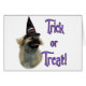 Wird es dieses Halloween Tricks oder Treats sein? In unserem Urlaubsdesign trägt Ihr Lieblingshunde, der tibetische Spanier, einen Hexenhut. Fügen Sie ein wenig 'Hocus Pocus' zu All Hallows' Eva in diesem Jahr hinzu!