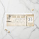 Save the Date fliegen Boarding Tickets mit Strandpalmen und Flugzeug.