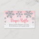 Diese bezaubernden Windeln sind die perfekte Baby-Duschaktivität! Fügen Sie einfach eine mit Ihrer Baby Dusche Einladung ein. Die Gäste geben ihren Namen auf dem Windelturm-Ticket ein und bringen ein paar Windeln mit, um einen Preis zu gewinnen! Eine tolle Möglichkeit für Mama-to-be, sich mit einigen dringend benötigten Windeln auszustatten und dabei eine lustige Baby Shower Tombola zu veranstalten! Das Design hat wunderschöne Imitate silberne Glitzer, die Schneeflocken mit rosa Akzenten, perfekt für einen Winter Babydusche für ein Mädchen.