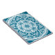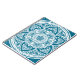 Dieses weiße Mandala sitzt auf einem aquamarinen Hintergrund. Die Farben sind sehr beruhigend und friedlich. Teil der Sammlung Bardh Mandala.