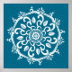 Dieses weiße Mandala sitzt auf einem aquamarinen Hintergrund. Die Farben sind sehr beruhigend und friedlich. Teil der Payon Mandala Kollektion.
