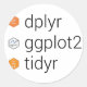 Tidyverse Bibliotheken: dplyr, ggplot2, tidyr Runder Aufkleber