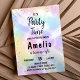 Notre invitation d'anniversaire de teinture de cravate est la façon parfaite pour les amis invitations et la famille à votre fête. Le design comporte un thème de teinture à cravate, avec beaucoup d'espace pour tous les détails importants tels que la date, l'heure et l'emplacement de la fête. Parfait pour tout âge, genre et thème de la fête, il est sûr d'impressionner vos invités et les exciter pour la fête.