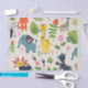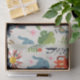 Dieses Muster-Papier aus Dschungelpastellblättern mit verschiedenen Tieren und wunderschönen Blume im Dschungel. Ideal für Geschenkverpackungen, Tischdekorationen und vieles mehr.