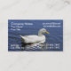 Tiergeschäftskarte mit Foto einer schönen weißen Entenschwimmens in einem Teich. Fertigen Sie den Text auf diesem Visitenkartehintergrund besonders an und benutzen Sie die Karte für die Themen, die auf Natur, wild lebenden Tieren, Enten oder Tieren bezogen werden.