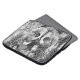 Grafisches Portrait einer großen grauen Eule in Schwarz-Weiß