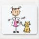 Tierärztlicher Strichmännchenknopf, der einen Strichmännchenmädchentierarzt mit einer Katze und einem Text, der, kennzeichnet "Tierarzt" liest.