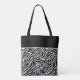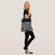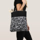 Diese Schultertasche wird mit einem süße Tier Zebra-Druck-Design gezeigt. Mittlere Größe angezeigt. Hat schwarze Gurte. Passen Sie dieses Objekt an oder kaufen Sie, wie es ist. Lizenzierte Printwerbung