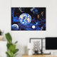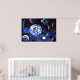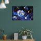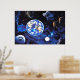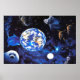 Ein atemberaubendes Panorama über eine Weltraum-Landschaft mit Tieren im freien Raum und die Erde im Hintergrund. Das ist ein wunderschönes Foto auf diesem Poster