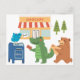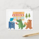 Ein blauer Vogel, ein grüner Alligator und ein brauner Bär haben alle eine Post, um diese niedliche, farbenfrohe Postkarte zu verschicken, um dem Empfänger ein Lächeln zu bringen. Ideal für Kinder und Erwachsene. Entworfen auf Canva mit menschgemachten Cliparts.