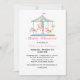 Eine süße Babydusche in Weiß, mit einem niedlichen pastellfarbenen Tierkarussell, ganz oben auf der Einladung und einem rosa auf weißem Polka-Punkt-Muster auf der Rückseite. Personalisieren Sie den Text, um Ihre Duschbedürfnisse zu Anzug.