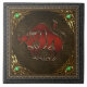 Wir sind stolz, dieser hohen Qualität die dekorative Fliese anzubieten, die das zweite Zeichen des Tierkreises kennzeichnet: Stier. Dieses ausgezeichnete Symbol wird mit geschnitztem Gold und prägeartigem jeweled rotem Lack gegen einen ledernen Hintergrund dargestellt. Die vier Sonnen, die im Gold geschlagen werden, stellen die Gesamtheit der Jahreszeiten, jede darstellt ein eingebettetes Stier birthstone dar: Smaragd.