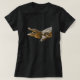 Das Material ist eigentlich gute Qualität, der Stoff ist nur etwas verzogen so dass der Drück leicht schief aussieht. Der Druck ist gute Qualität, habe das T-Shirt schon einige male gewaschen.
