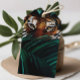 Ein Tiger, der aus den grünen Dschungel-Blätter herausschaut, die ihre Beute jagen