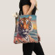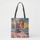 Funny Tiger mit einem hawaiianischen Shirt an einem schönen Strand.