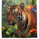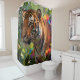 Ein wunderschöner Tiger steht in einem grünen Dschungel, dargestellt in Splash-Art, ergibt einen wunderschönen wildtierthematischen Duschvorhang. Moderner Kunststil, perfekt für jeden, der große Katzen, Tiere und Natur liebt.