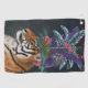 Hot House Tiger 2 von Fab Funky. Ein Tiger mit tropischen Blume und Grünpflanzen überragt den Kopf wie ein Kopfstück.| 192437GG