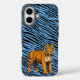 Tiger Pattern in Light Blue with Tiger iPhone 16 Hülle