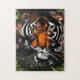 Die originelle Malerei eines Tigers sieht vor dem Anstarren. Erstellt mit Acrylfarbe auf Leinwand.