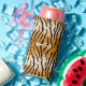 Tiger Muster Seltzer Can Cooler mit Tigerstreifen und anpassbarem Text.