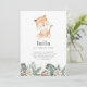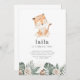 Un tigre d'aquarelle douce aux feuilles de jungle et aux fleurs neutres. Parfait pour votre fête d'anniversaire sur le thème du tigre !
