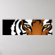 Schöne minimalistische abstrakte Vektorkunst eines Tigerkopfes, der in kühnen Farben nach vorne gerichtet ist.