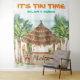 Im Hintergrund des tropischen Fotos steht ein Tiki-Bar in Aquarellfarbe (mit Papagei und Cocktails), der von Palmen, Tiki-Fackeln und Totems mit "Aloha"- und "It's Tiki Time"-Schriftart im Inselstil gerahmt ist. Der Text kann personalisiert sein (z.B. wird hier mit zwei Namen angezeigt, als wäre es eine Dusche für ein Paar, aber man könnte den Text personalisieren und in "Happy Birthday Marley" ändern, oder was auch immer die Anzüge Ihrer Feier sein mögen). Perfekt für Hochzeiten, Duschen, Geburtstag, Jubiläum, etc. Kunst von KL Stock.