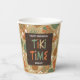 Die Tiki Party Themenpapiertassen sind mit einem rustikalen Holzschild in der Mitte mit Typografie "Tiki Time" und "Happy Birthday" mit einem personalisierten Namen versehen, der von Tiki-Masken, Ananas, Hibiskus-Blume, Palmen und Monstera-Blätter gesäumt wird. Ideal für tropische, luauische und Strandfeste.