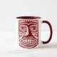 Eine Tasse mit einem kühnen Original Holzschnitt-Effekt Tiki Maske Design. Dieses fröhliche, lustige Design wird auf beiden Seiten wiederholt.