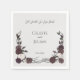 A dramatic dark burgundy floral skull border with hand-drawn rose vines anchors the bottom, adding moody romance and subtle gothic detail. Printed on the front only, these napkins are perfect for gothic weddings, dark romantic receptions, Halloween weddings, and alternative bridal celebrations, completing a sophisticated gothic tablescape.