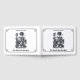 Dieses skurrile Gästebuch zeigt eine Vintage Darstellung des Skeletttodes, das alle in Rose verziert ist. Ideal für Halloween- oder Dia de los Muertos Hochzeiten. Schwarz und Weiß. Personalisieren Sie Ihre Daten mit Namen und Datum.