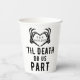 Schwarzweiß-Skelett "bis zum Tod machen wir Teil" Hochzeitspapiertassen, die ideal für ein Party, Probe oder lässigen Empfang sind. Personalisieren Sie das Innere des Herzens mit den Initialen des Coupons und dem Hochzeitstag.