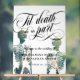 Elegantes Acryl Halloween oder Gothehohe Begrüßungsschild mit Til Tode sind wir Teil geschrieben in einem Wirblen schwarzen Kalligraphie-Skript vor einem weißen Hintergrund mit zwei Skeletten. Fügen Sie Ihre Namen und das Hochzeitsdatum vor einem weißen Hintergrund mit transparenten Skeletten. Skeleton-thematisches Hochzeitszeichen in Schwarz-Weiß personalisiert mit Namen und Hochzeitsdatum.