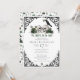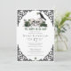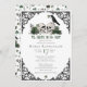 Diese elegante, gotische "Til Death Do Us Part" irische Brautdusche mit handgezeichnet irischen und gotischen Illustrationen in schwarzer Tinte zeigt 2 Schädel und eine schwarze Krähe mit grünen Rose, Blätter, Beeren, Wildblumen und grünen Nischen. Die Rückseite weist ein schönes Muster mit diesen Elementen auf. Eleganter weißer Hintergrund. Alle Texte können bearbeitet werden.