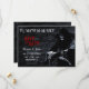 Eine einzigartige gotische Hochzeitskarte mit dem düsteren Sensenmann und seinem Scythe rettete-the-date. Ein paar zusammen, "bis zum Tod machen wir Teil."